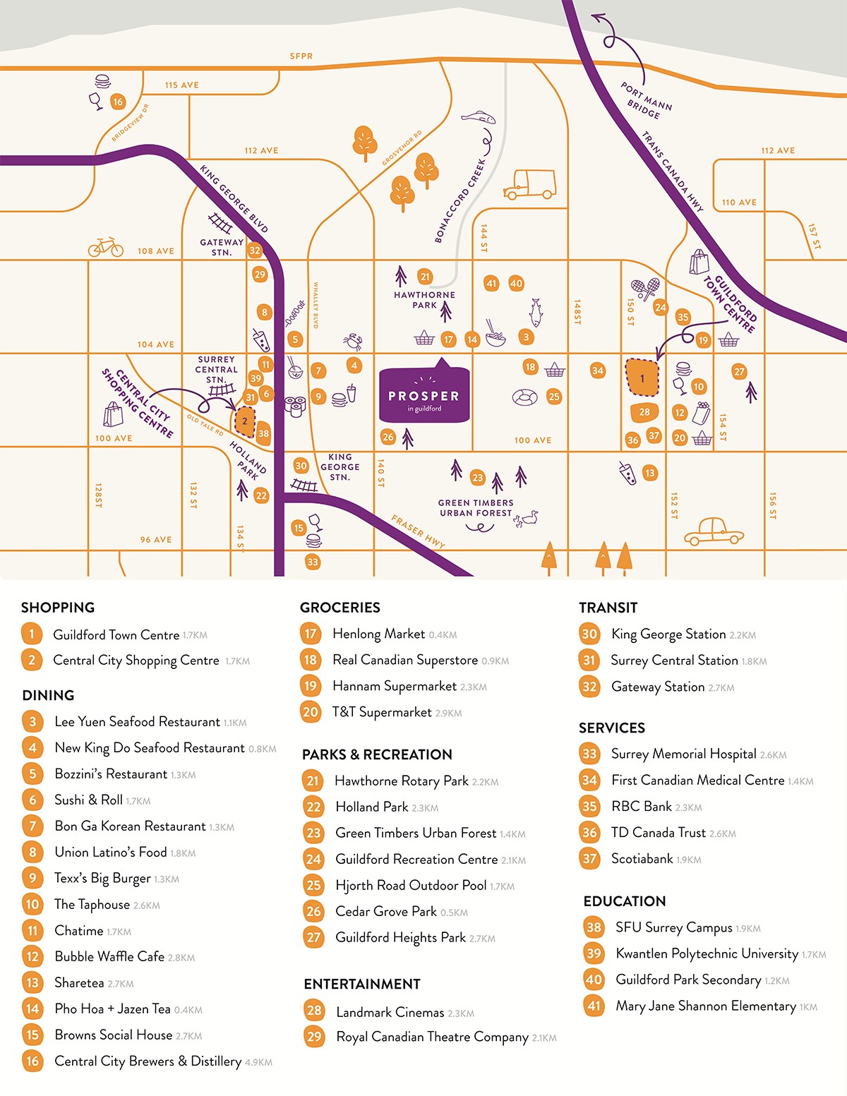 With restaurants, parks, and recreation nearby, there’s never a dull moment. Exploring a neighbourhood is an adventure when it’s filled with gems nearby. Filled with diverse cuisine, parks and trails, there’s always something to explore!
